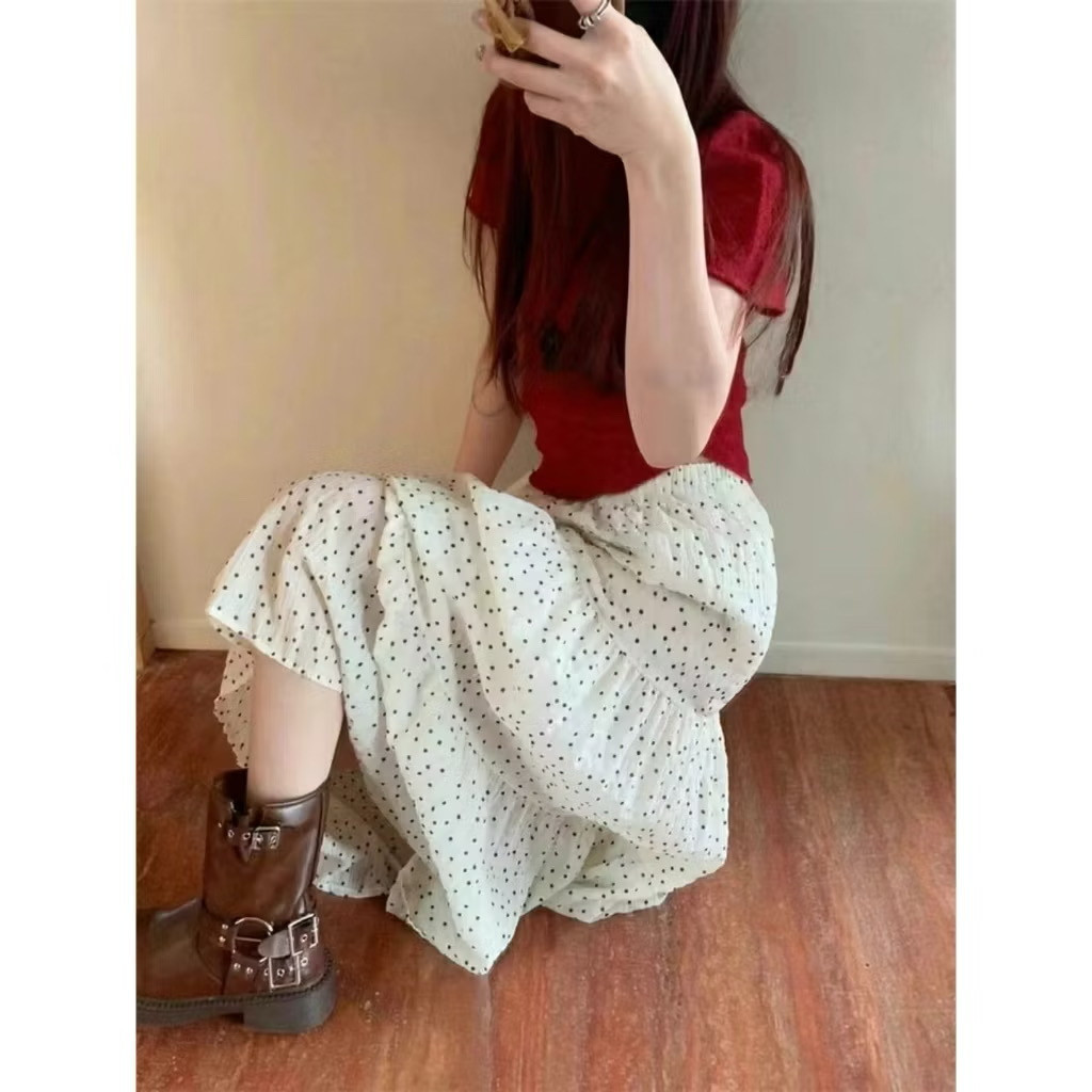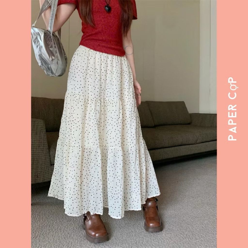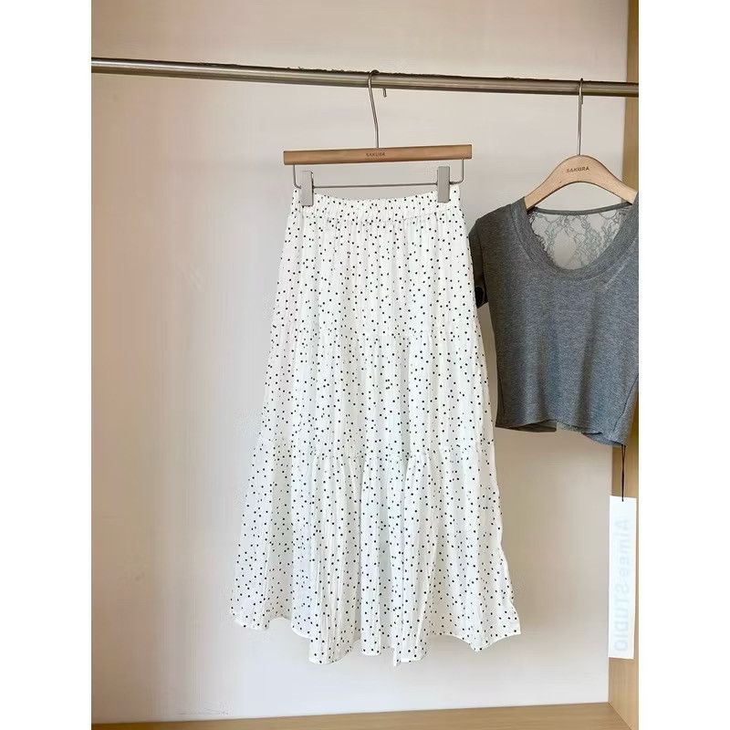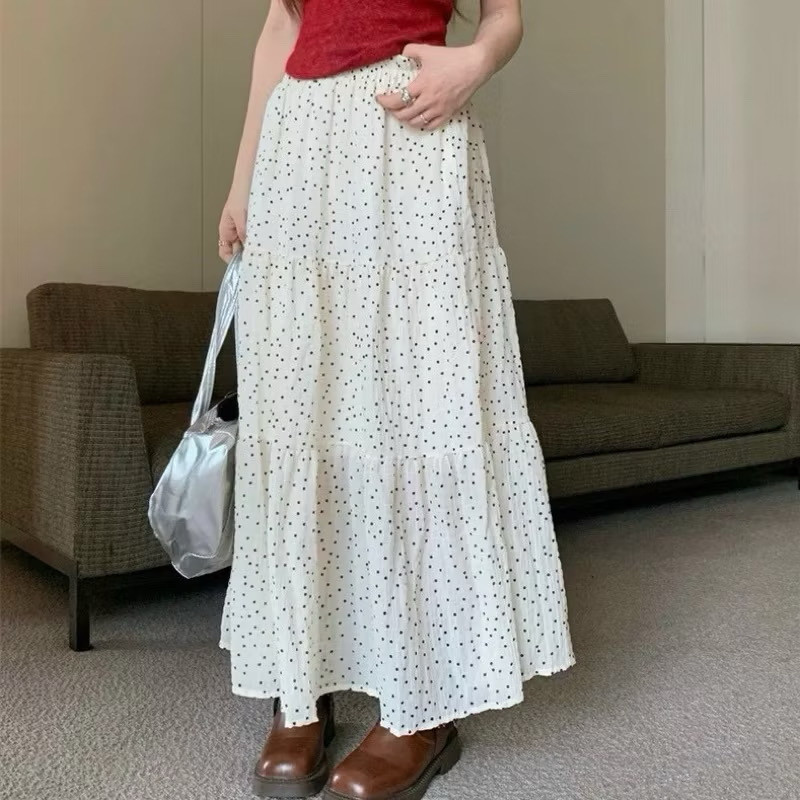 优选韓版高腰圓點蛋糕裙 垂感 顯瘦 長裙 蛋糕長裙 A字裙 半身裙 圓點裙 小個子長裙