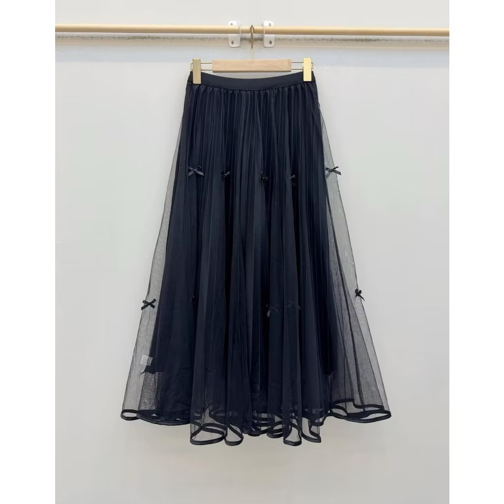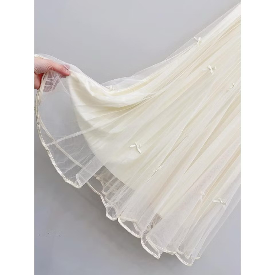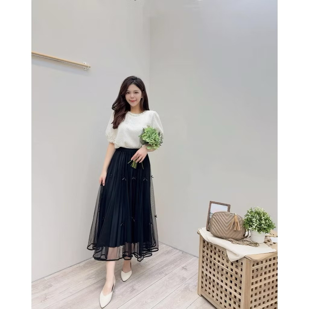立體蝴蝶結網紗百褶裙 垂墜感紗裙