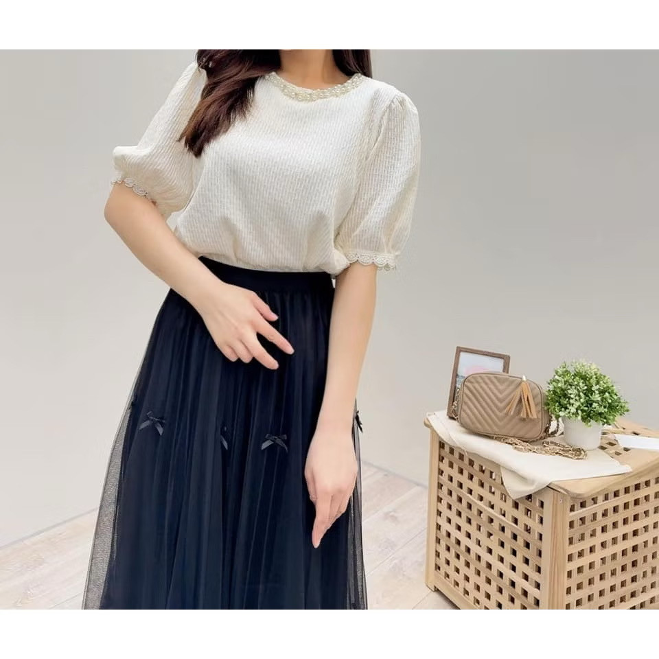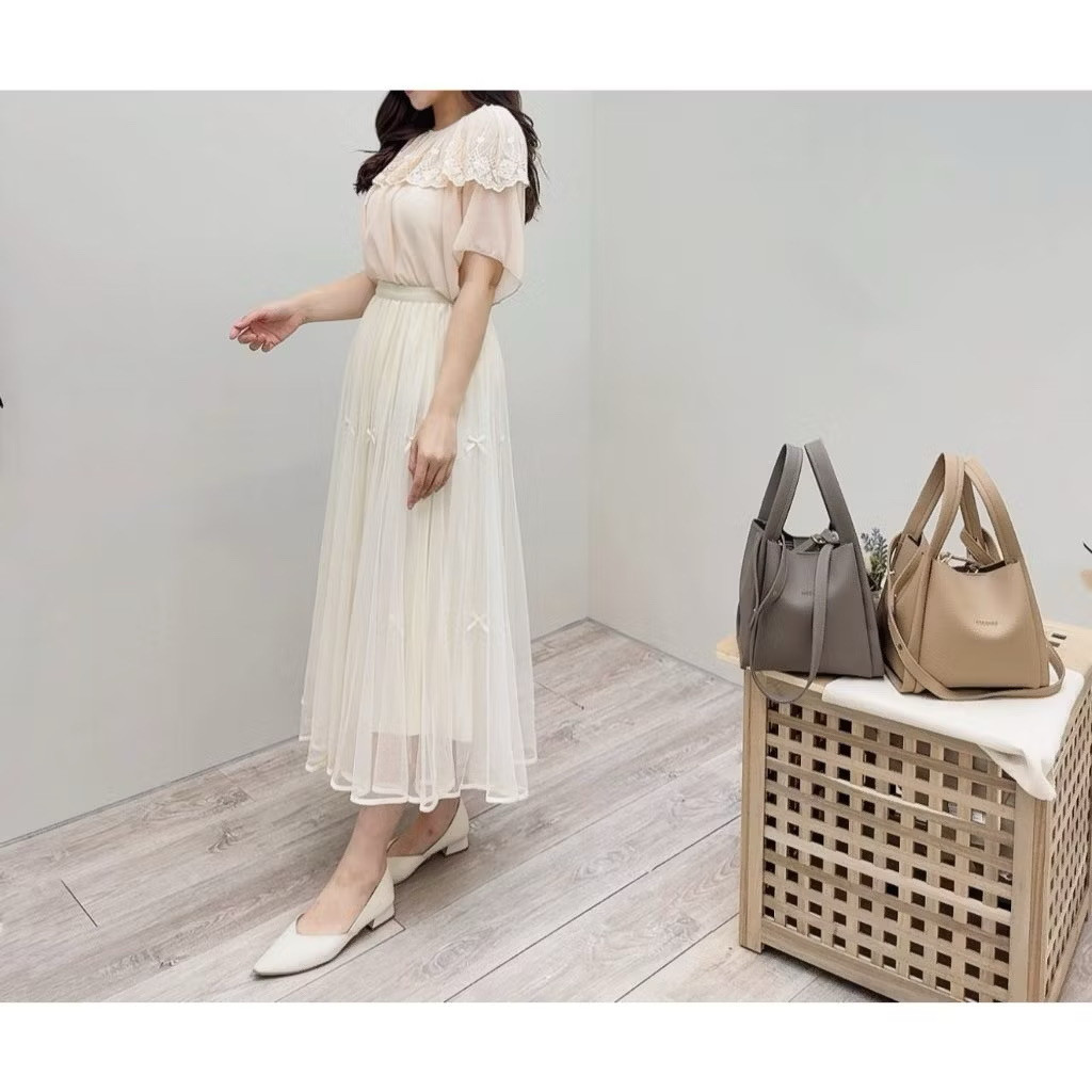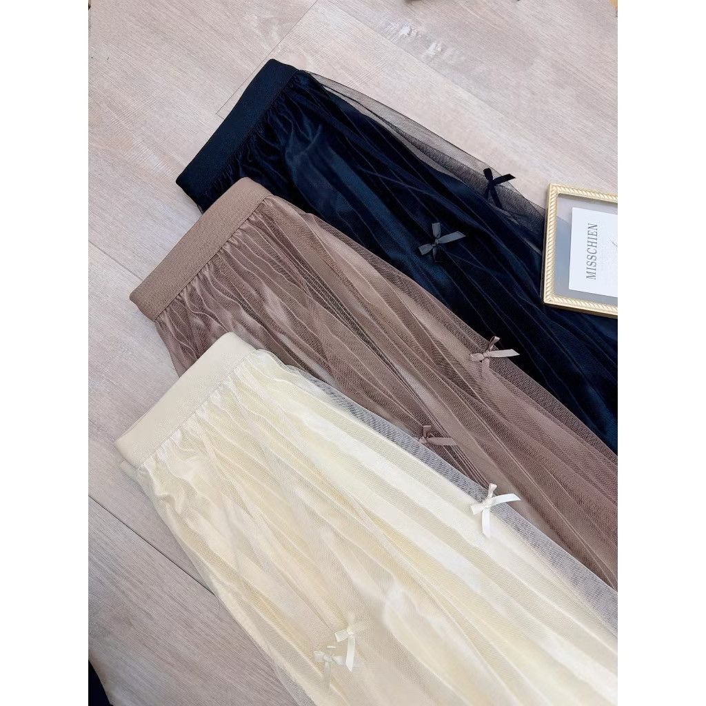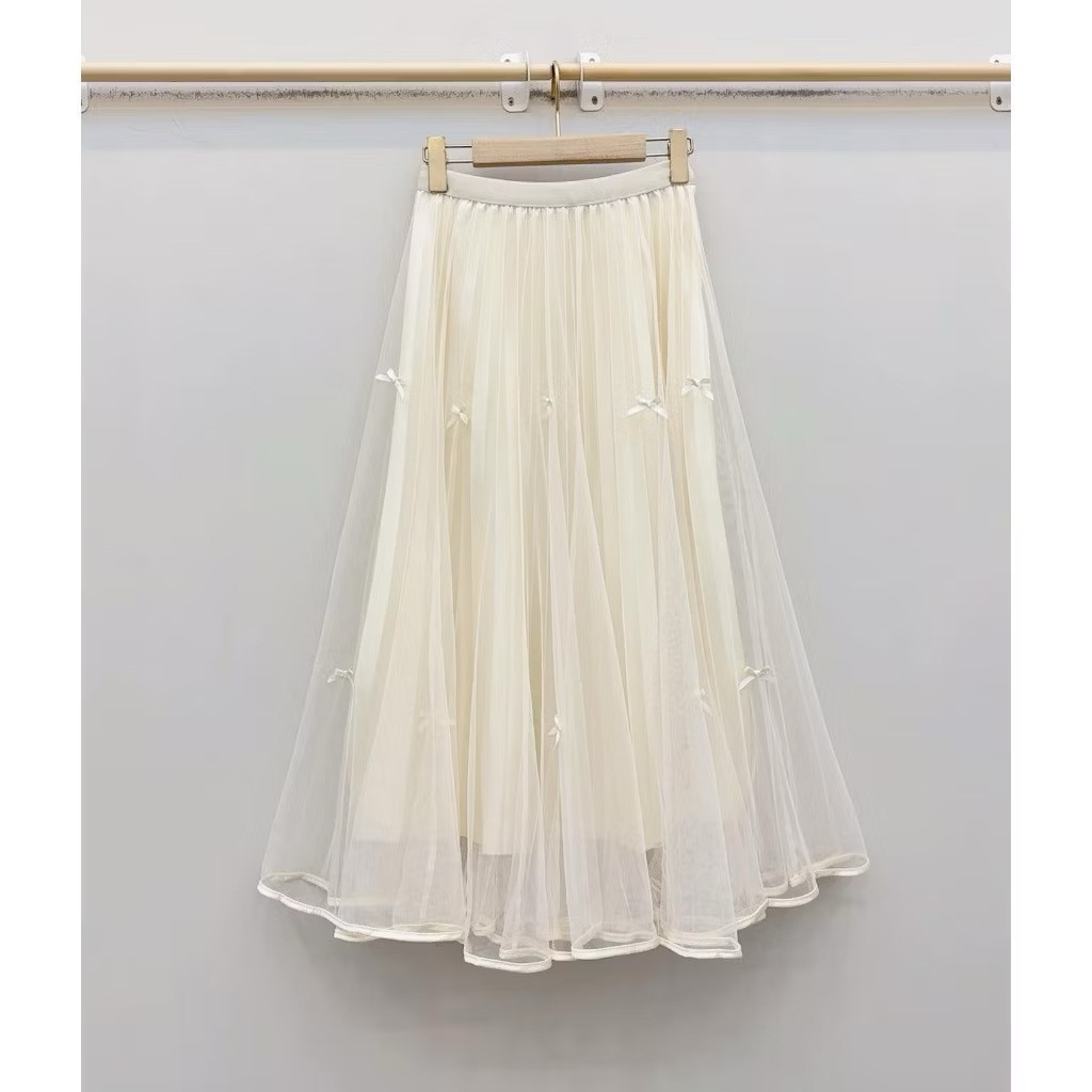 立體蝴蝶結網紗百褶裙 垂墜感紗裙