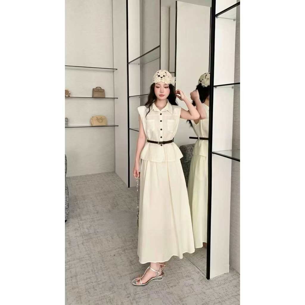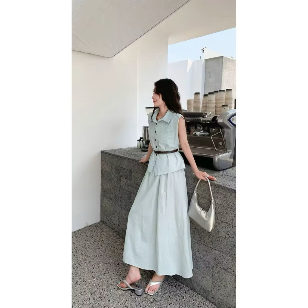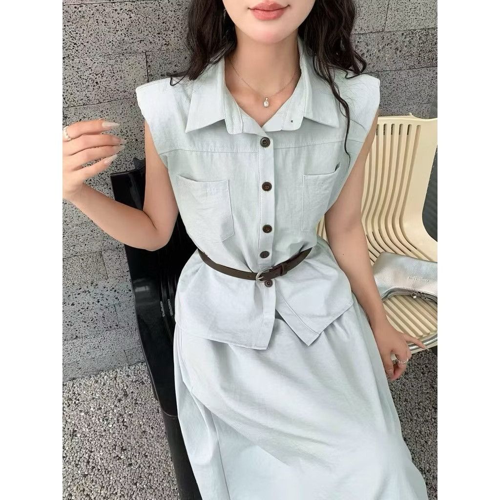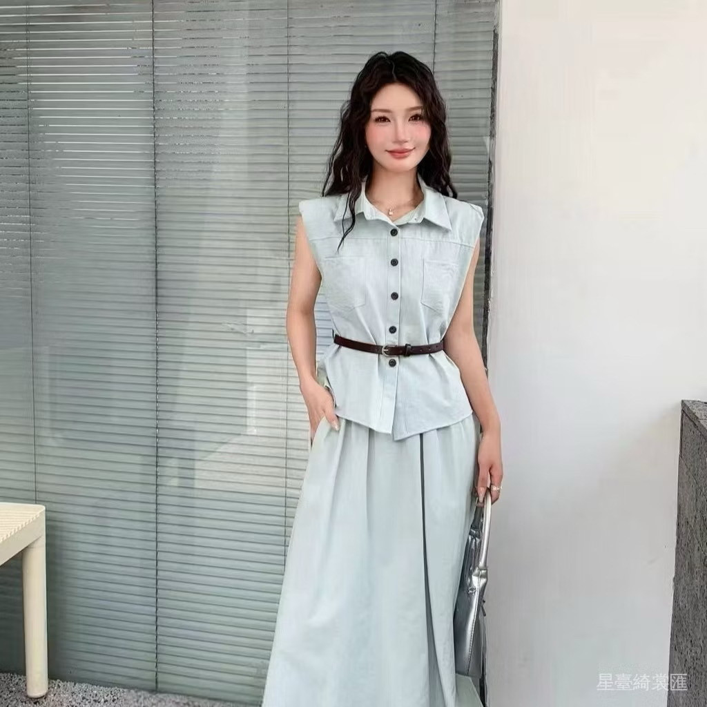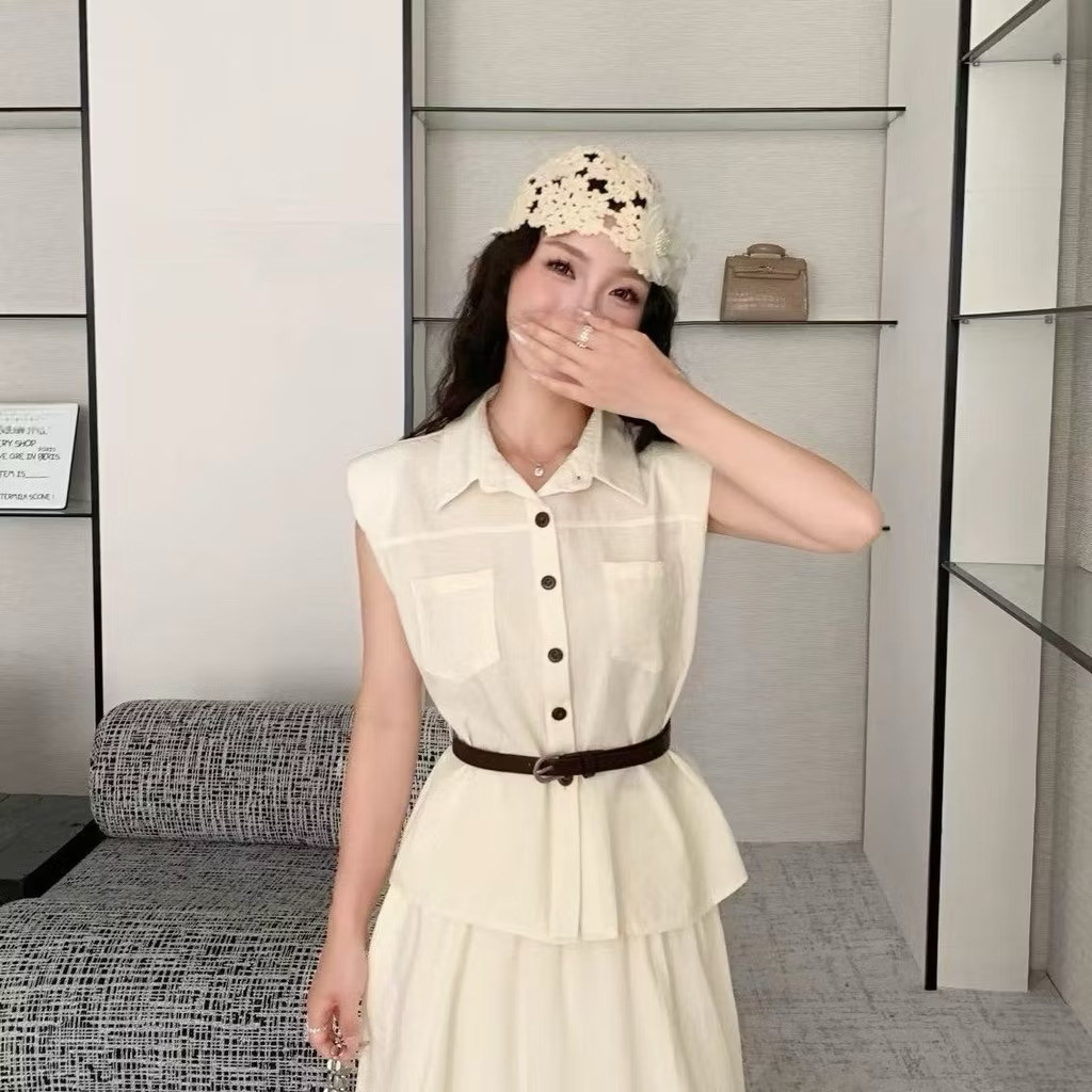 夏季棉麻襯衫兩件式顯瘦套裝洋裝