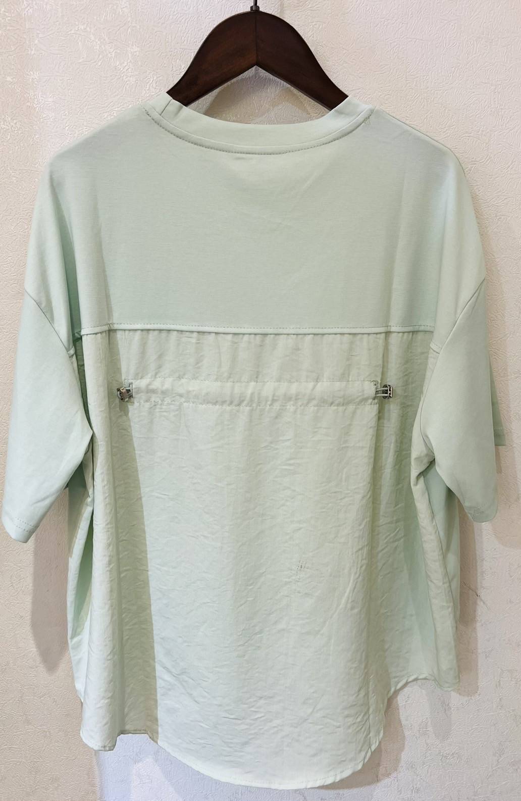 簡約設計款後拼接襯衫料 質感造型上衣,Light服飾店